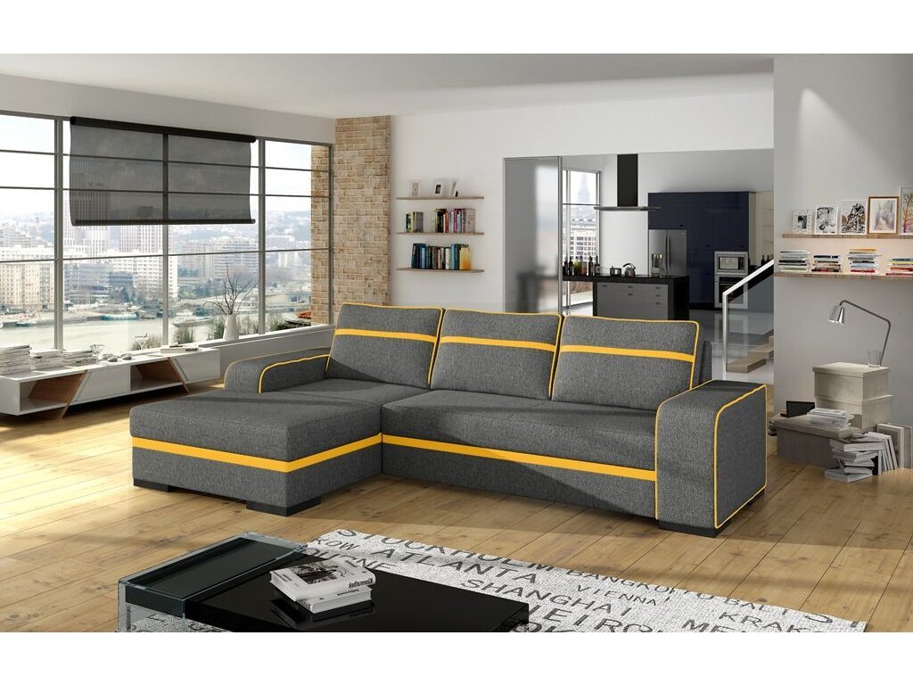 Elegantní rohová sedací souprava Funny je vhodná do každého interiéru. Umístit ji můžete ke stěně, nebo do prostoru. Sedací souprava je rozkládací a má také praktický úložný prostor. Jednoduchým rozložením vznikne dostatečně velké lůžko vhodné k příležitostnému spaní. Výplň sedáku tvoří pružiny faliste s kvalitní PUR pěnou. Tato kombinace zajistí pohodlné sezení. Sedací souprava je potažena velmi oblíbenou kvalitní látkou Inari. Zajímavým prvkem je proužek v kontrastní barvě, lemující sedací soupravu i polštáře. Tuto sedačku nabízíme v několika barevných variantách. V ceně sedací soupravy jsou 3 velké opěrné polštáře. Ostatní vyobrazené dekorace nejsou v ceně.