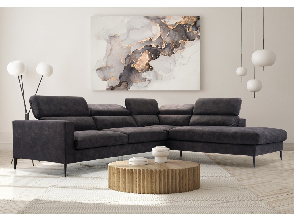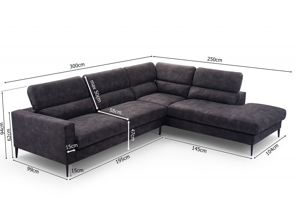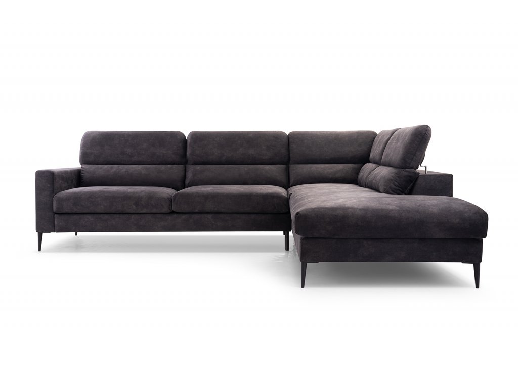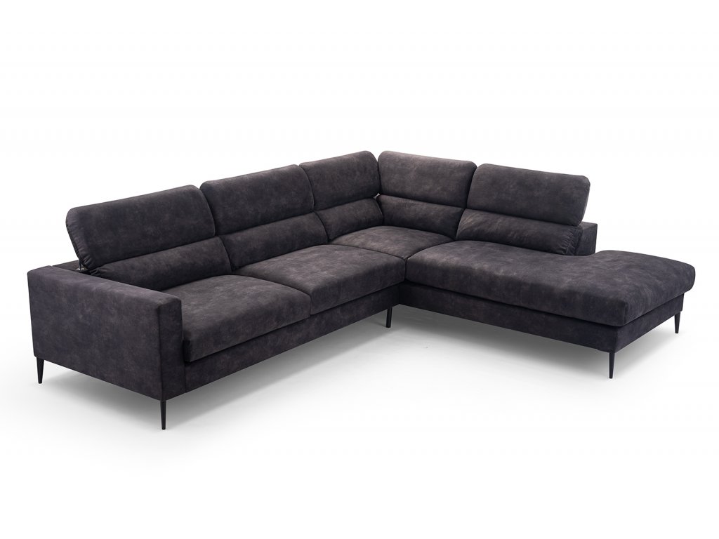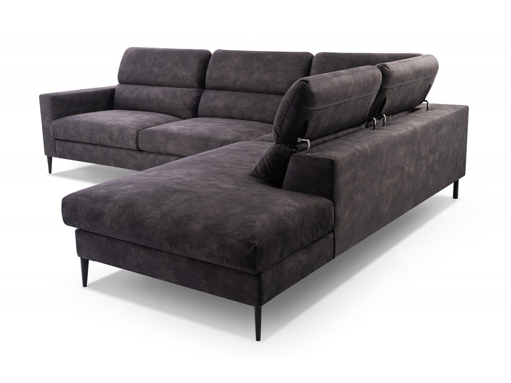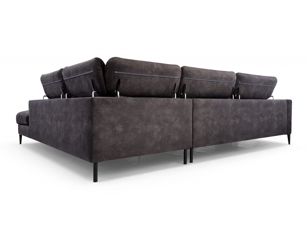 Moderní, prostorná a mimořádně pohodlná rohová pohovka, která svým rozměrem splní všechna vaše očekávání. Na této designové sedačce můžete lenošit u televize nebo pozvat přátele k příjemnému posezení. Velkou předností jsou také polohovatelné opěrky hlavy. Sedačka je vyrobena z vlnitých pružin v kombinaci s kvalitní PUR pěnou. Výhodou této sedací soupravy je možnost univerzálního sestavení, tzn. že podle potřeby můžete mít levou nebo pravou stranu. Potažena je čalounickou látkou Palladium v šedém provedení. Tato látka snižuje absorpci tekutin, usnadňuje údržbu a minimalizuje riziko ušpinění. Sedací souprava má očalouněná také záda, takže ji můžete umístit i do prostoru. Sedací souprava není rozkládací a nemá úložný prostor.