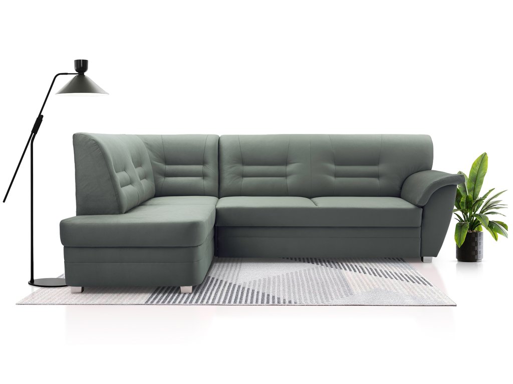 Moderní, rohová sedací souprava Dornia je rozkládací. Jednoduchým rozkladem vzniká lůžko vhodné k příležitostnému spaní. Má uložný prostor, který lze využít například na lůžkoviny. Sedací souprava je pružinová v kombinaci s kvalitní PUR pěnou. Je celočalouněná a je možno ji umístit také do prostoru. Na úvodním obrázku je sedací souprava vyobrazena v pravém provedení. Správná barva je zobrazena na první fotografii. Ostaní fotografie jsou pouze ilustrační. Vyobrazené doplňky a dekorace nejsou v ceně.