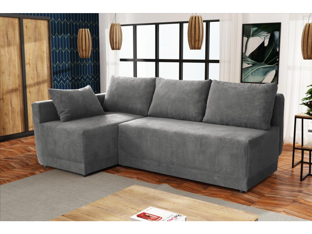 Moderní rohová sedací souprava Vás zaujme svým jednoduchým designem. Součástí jsou polštáře, které dělají sedací soupravu velice pohodlnou. Díky svým rozměrům je vhodná i do menších pokojů. Je praktická, rozklad lze použít k občasnému přespání, plocha lůžka je 198x133 cm. Uvnitř sedací soupravy je úložný prostor, který je možné využít k uložení lůžkovin. Výplň sedáku tvoří pružiny bonell v kombinaci s kvalitní PUR pěnou. Sedací soupravu nabízíme v několika barevných provedeních. Fotografie sedací soupravy v rozkladu jsou pouze ilustrační. Správný barevný odstín je na úvodní fotografii.