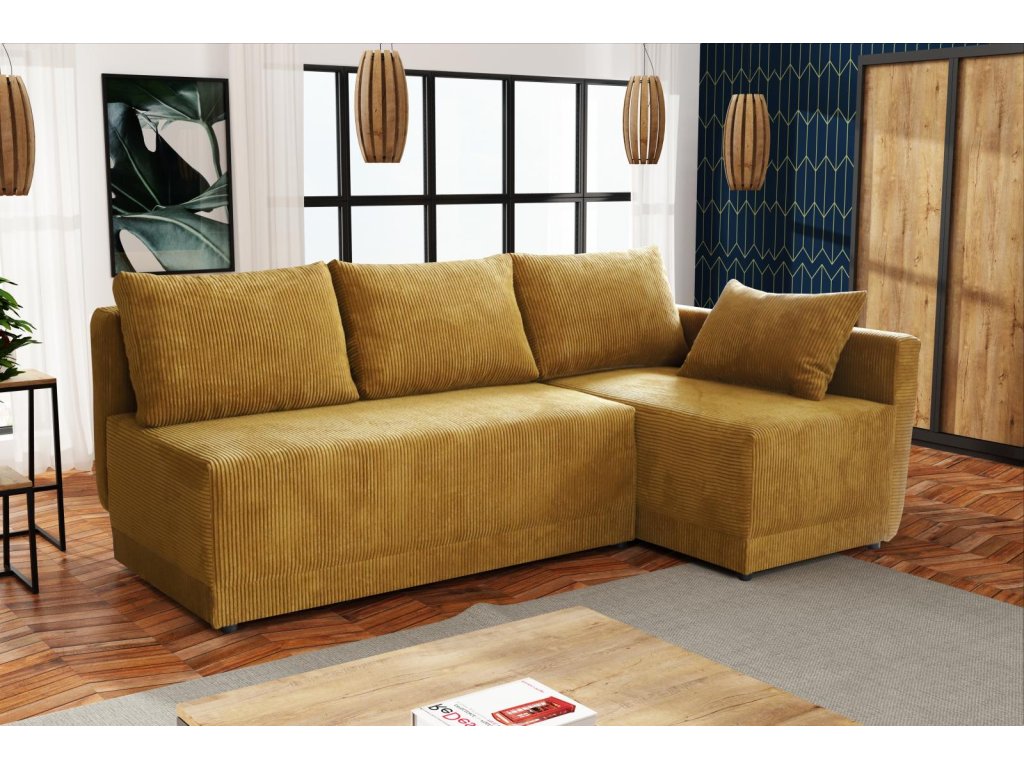 Moderní rohová sedací souprava Vás zaujme svým jednoduchým designem. Součástí jsou polštáře, které dělají sedací soupravu velice pohodlnou. Díky svým rozměrům je vhodná i do menších pokojů. Je praktická, rozklad lze použít k občasnému přespání, plocha lůžka je 198x133 cm. Uvnitř sedací soupravy je úložný prostor, který je možné využít k uložení lůžkovin. Výplň sedáku tvoří pružiny bonell v kombinaci s kvalitní PUR pěnou. Sedací soupravu nabízíme v několika barevných provedeních. Fotografie sedací soupravy v rozkladu jsou pouze ilustrační. Správný barevný odstín je na úvodní fotografii.