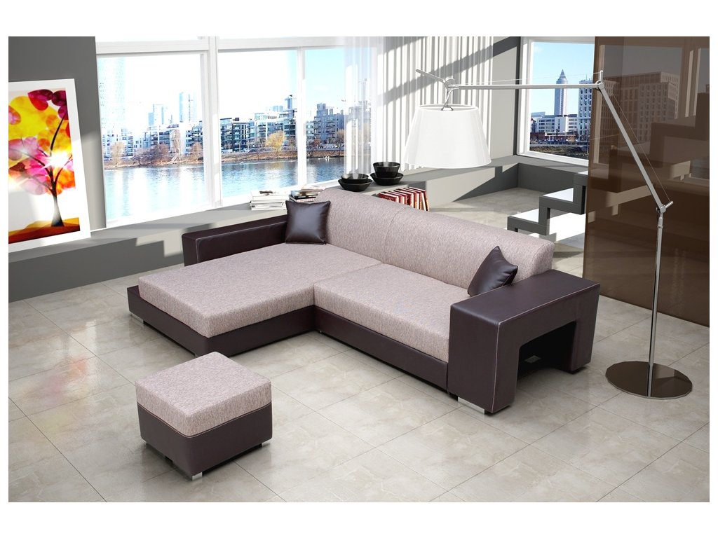 Sedací souprava Oskar s taburetem zdarma se hodí do každého interiéru. Sedací souprava je rozkládací a má praktický úložný prostor. Pohodlnost sezení zajišťují pružiny faliste s kvalitní PUR pěnou. Jednoduchým rozkladem vznikne lůžko vhodné k příležitostnému spaní. Sedací soupravu nabízíme v kvalitní potahové látce v kombinaci s EKO kůží, a to v několika barevných provedeních, které také naleznete v naší nabídce. V ceně sedací soupravy je taburet 45x45 cm a 2 malé polštářky. Ostatní vyobrazené dekorace nejsou v ceně.