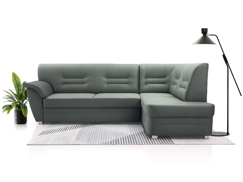 Moderní, rohová sedací souprava Dornia je rozkládací. Jednoduchým rozkladem vzniká lůžko vhodné k příležitostnému spaní. Má uložný prostor, který lze využít například na lůžkoviny. Sedací souprava je pružinová v kombinaci s kvalitní PUR pěnou. Je celočalouněná a je možno ji umístit také do prostoru. Na úvodním obrázku je sedací souprava vyobrazena v pravém provedení. Správná barva je zobrazena na první fotografii. Ostaní fotografie jsou pouze ilustrační. Vyobrazené doplňky a dekorace nejsou v ceně.