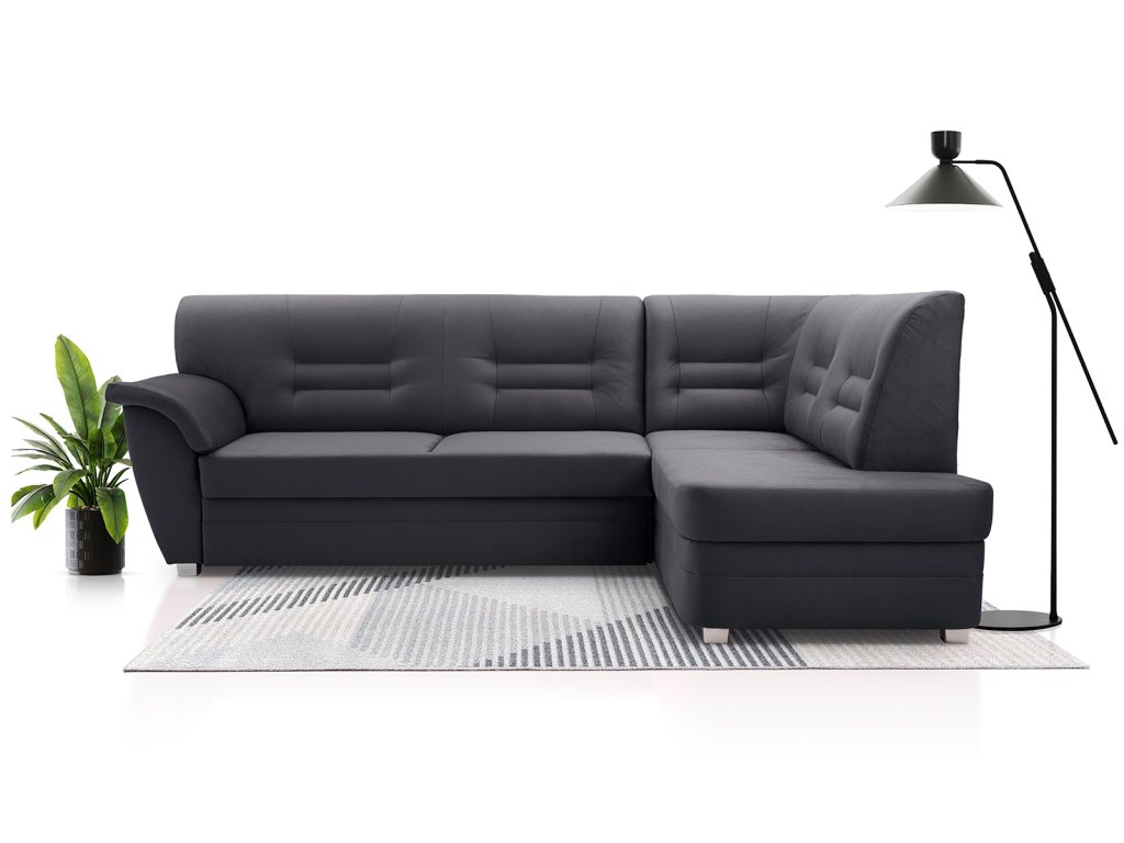 Moderní, rohová sedací souprava Dornia je rozkládací. Jednoduchým rozkladem vzniká lůžko vhodné k příležitostnému spaní. Má uložný prostor, který lze využít například na lůžkoviny. Sedací souprava je pružinová v kombinaci s kvalitní PUR pěnou. Je celočalouněná a je možno ji umístit také do prostoru. Na úvodním obrázku je sedací souprava vyobrazena v pravém provedení. Správná barva je zobrazena na první fotografii. Ostaní fotografie jsou pouze ilustrační. Vyobrazené doplňky a dekorace nejsou v ceně.