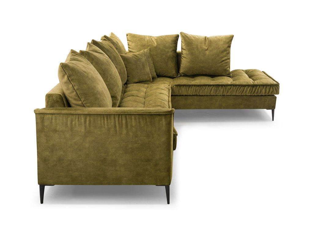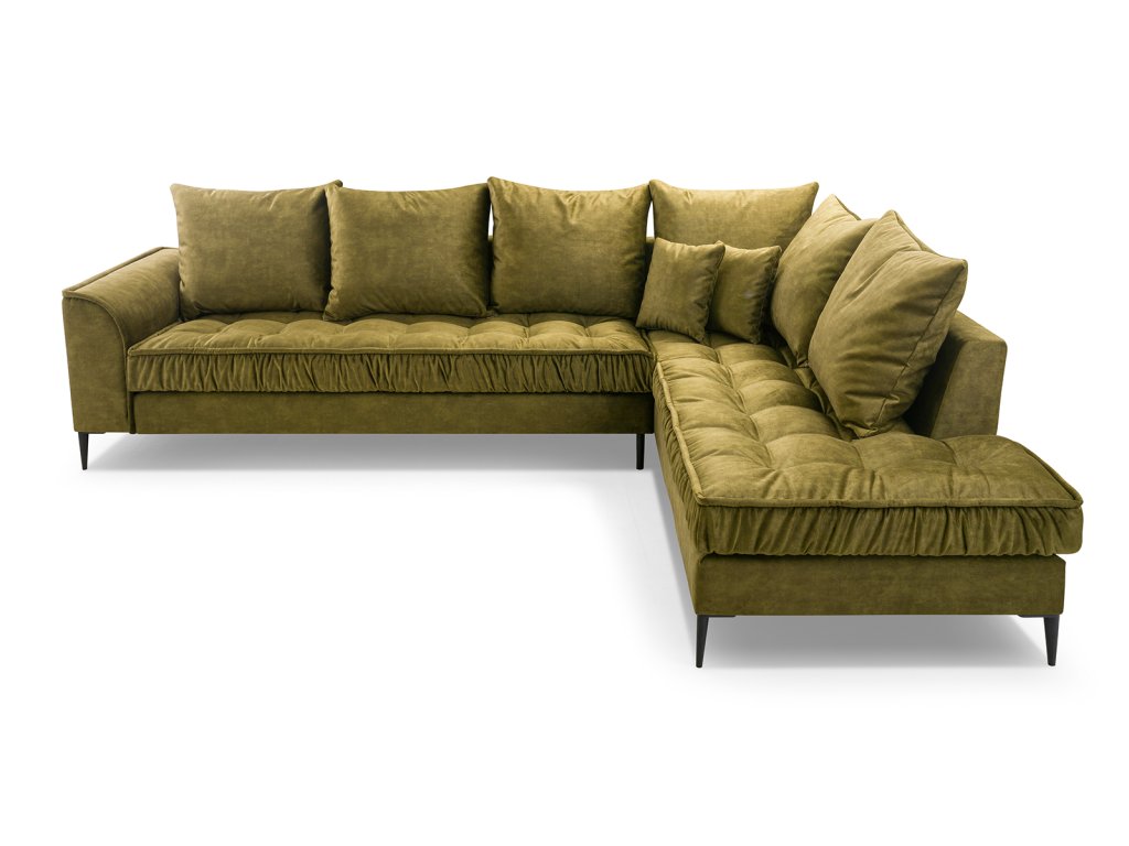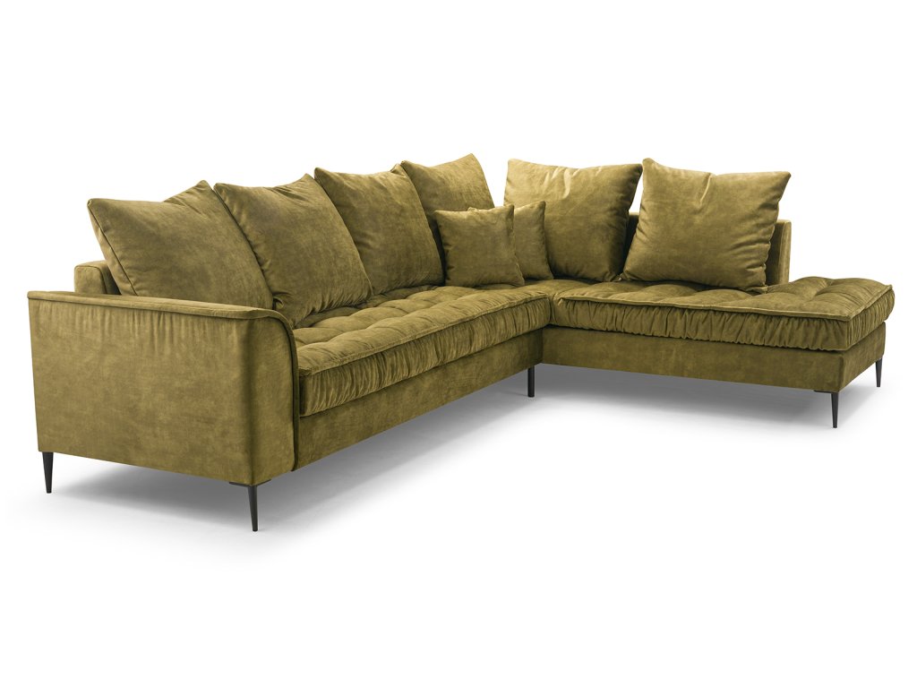 Polštáře jsou velmi pohodlnou součástí sedacích souprav. Jejich velké množství symbolizuje dokonalý relax. Sedací souprava Lidie je tedy pro ty, kteří si rádi užijí relax nejen po náročném dni, skvělou volbou. Její vzhled zaujme každou návštěvu. Prošívání sedáku a kovové nožky sedací soupravě přidává na eleganci. Všechny polštáře jsou volně ložené a můžete je přizpůsobit svému pohodlí. Výplň sedáku tvoří pružiny typu faliste v kombinaci s pěnou T30 a HR 35/45. Sedací souprava je celočalouněná, takže ji můžete umístit do prostoru. Sedací souprava není rozkládací, ale po sejmutí polštářů, vznikne dostatečně velký prostor k občasnému přespání. Cena je uvedena za sedací soupravu včetně polštářů. Vyobrazené dekorace nejsou v ceně. Sedací soupravu nabízíme v levém, nebo pravém provedení.