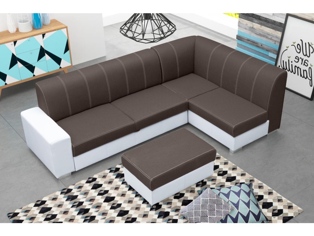Rohová sedací souprava Rest s taburetem zdarma je vhodná do všech moderních interiérů. Je rozkládací a má praktický úložný prostor. Pohodlnost sezení zajišťuje kombinace pružin faliste s kvalitní PUR pěnou. Jednoduchým rozkladem vznikne lůžko vhodné k příležitostnému spaní. Sedací soupravu nabízíme v kvalitní potahové látce v kombinaci s bílou EKO kůží, a to v několika barevných provedeních, které také najdete v naší nabídce. V ceně sedací soupravy je taburet 55x90 cm. Ostatní vyobrazené dekorace nejsou v ceně.