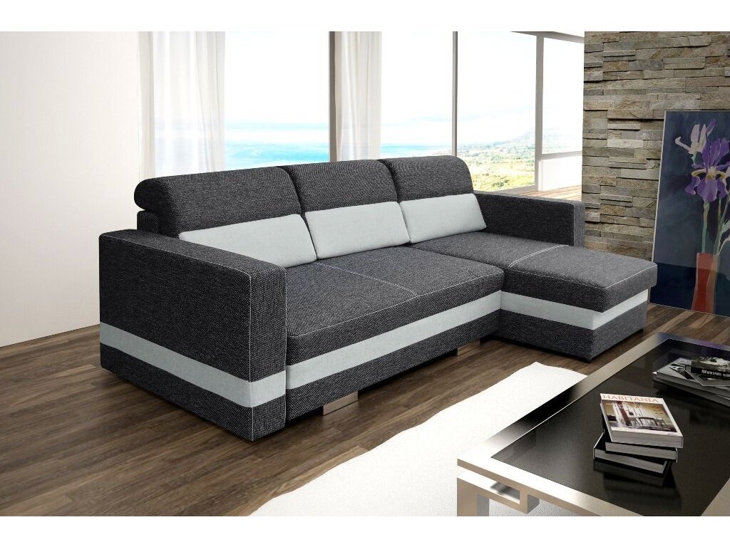 Elegantní rohová sedací souprava Rimini je rozkládací a má také 2 praktické úložné prostory. Díky svým rozměrům je vhodná i do menších pokojů. Jednoduchým rozložením pomocí automatu, vznikne dostatečně velké lůžko vhodné k příležitostnému spaní. Výplň sedáku tvoří kombinace pružin bonell s kvalitní PUR pěnou. Tato kombinace zajistí velmi pohodlné sezení. Sedací souprava je potažena kvalitní látkou v kombinaci 2 barev, a to v několika odstínech. V ceně sedací soupravy jsou 3 velké opěrné polštáře. Ostatní vyobrazené dekorace nejsou v ceně.