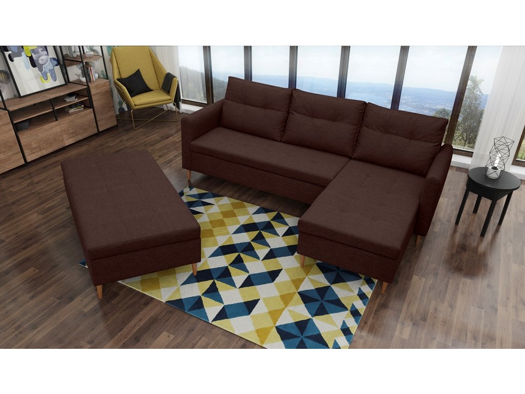 Rohová sedací souprava Areon, je vhodná do všech moderních interiérů. Pohodlnost sezení zajišťuje kombinace pružin s kvalitní PUR pěnou a 3 velké opěrné polštáře. V ceně sedací soupravy je velký taburet s úložným prostorem, který můžete využít jako další místo k sezení, nebo ho v případě potřeby můžete přistavit k sedací soupravě a vytvořit tak prostor pro občasné přespání Vaší návštěvy. Sedací soupravu nabízíme v kvalitní potahové látce v několika barevných provedeních. Záda sedací soupravy jsou čalouněná, takže je vhodná i pro umístění do prostoru. Úvodní fotografie je ilustrační. Vzorek látky, ve které bude sedací souprava dodána, je vyobrazen v doplňkových fotografiích. Vyobrazené doplňky a dekorace nejsou v ceně.