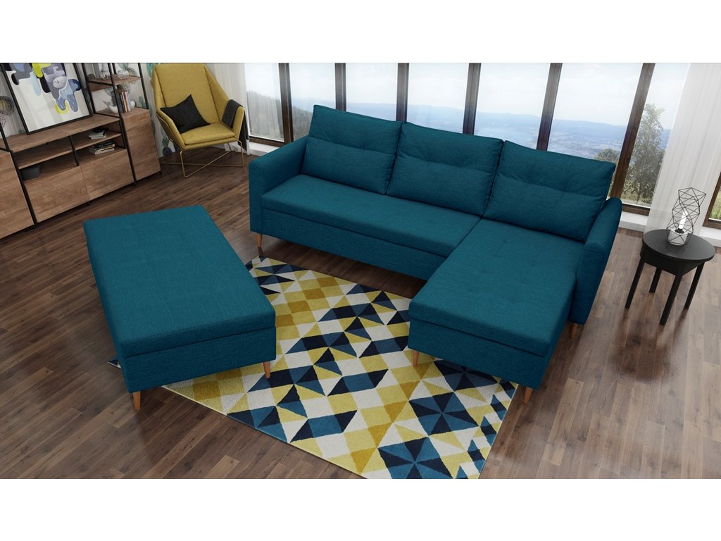 Rohová sedací souprava Areon, je vhodná do všech moderních interiérů. Pohodlnost sezení zajišťuje kombinace pružin s kvalitní PUR pěnou a 3 velké opěrné polštáře. V ceně sedací soupravy je velký taburet s úložným prostorem, který můžete využít jako další místo k sezení, nebo ho v případě potřeby můžete přistavit k sedací soupravě a vytvořit tak prostor pro občasné přespání Vaší návštěvy. Sedací soupravu nabízíme v kvalitní potahové látce v několika barevných provedeních. Záda sedací soupravy jsou čalouněná, takže je vhodná i pro umístění do prostoru. Úvodní fotografie je ilustrační. Vzorek látky, ve které bude sedací souprava dodána, je vyobrazen v doplňkových fotografiích. Vyobrazené doplňky a dekorace nejsou v ceně.