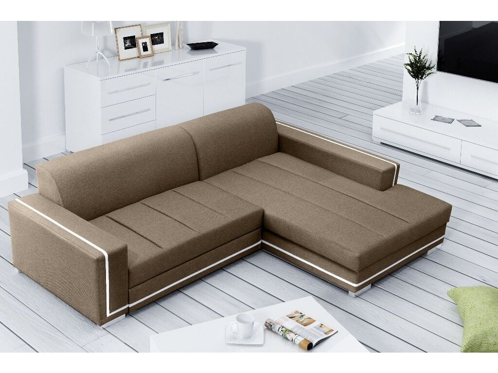 Rohová sedací souprava Tamarin je díky své jednoduché linii vhodná do každého interiéru. Zajímavým prvkem je neobvyklé prošití sedacích částí a bílý lemující proužek, který sedačce dodává nádech elegance. Sedací souprava je rozkládácí a má také praktický úložný prostor. Výplň sedáku tvoří kombinace pružin faliste a kvalitní PUR pěny. Tuto sedačku nabízíme v několika barevných variantách. Vyobrazené dekorace nejsou v ceně.