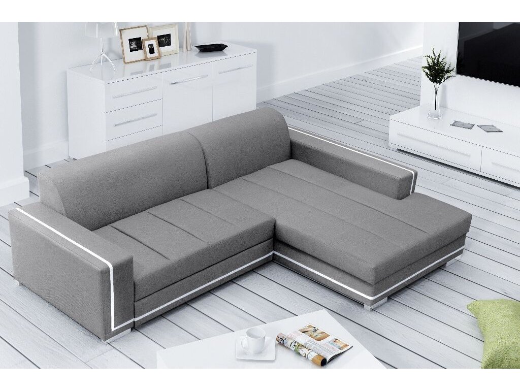 Rohová sedací souprava Tamarin je díky své jednoduché linii vhodná do každého interiéru. Zajímavým prvkem je neobvyklé prošití sedacích částí a bílý lemující proužek, který sedačce dodává nádech elegance. Sedací souprava je rozkládácí a má také praktický úložný prostor. Výplň sedáku tvoří kombinace pružin faliste a kvalitní PUR pěny. Tuto sedačku nabízíme v několika barevných variantách. Vyobrazené dekorace nejsou v ceně.