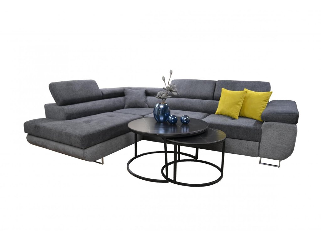 Sedací souprava Tony se stane příjemným centrem odpočinku, nebo setkání s rodinou a přáteli. Je velmi pohodlná, praktická a nabízí dostatek místa k sezení. Praktickou stránku sedací soupravy zajišťuje možnost rozložení k příležitostnému přespání a také nepostradatelný úložný prostor. Pohodlí při sezení zajišťuje výplň sedáků, kterou tvoří kombinace pružin s kvalitní PUR pěnou. Při odpočinku, nebo sledování televize Vám zvýší pohodlí polohovací opěrky. Sedací souprava je potažena kvalitní látkou a bude dodána v kombinaci barev, které jsou na úvodních fotografiích. Sedací soupravu nabízíme v levém i pravém provedení. Vyobrazené doplňky a dekorace nejsou v ceně.