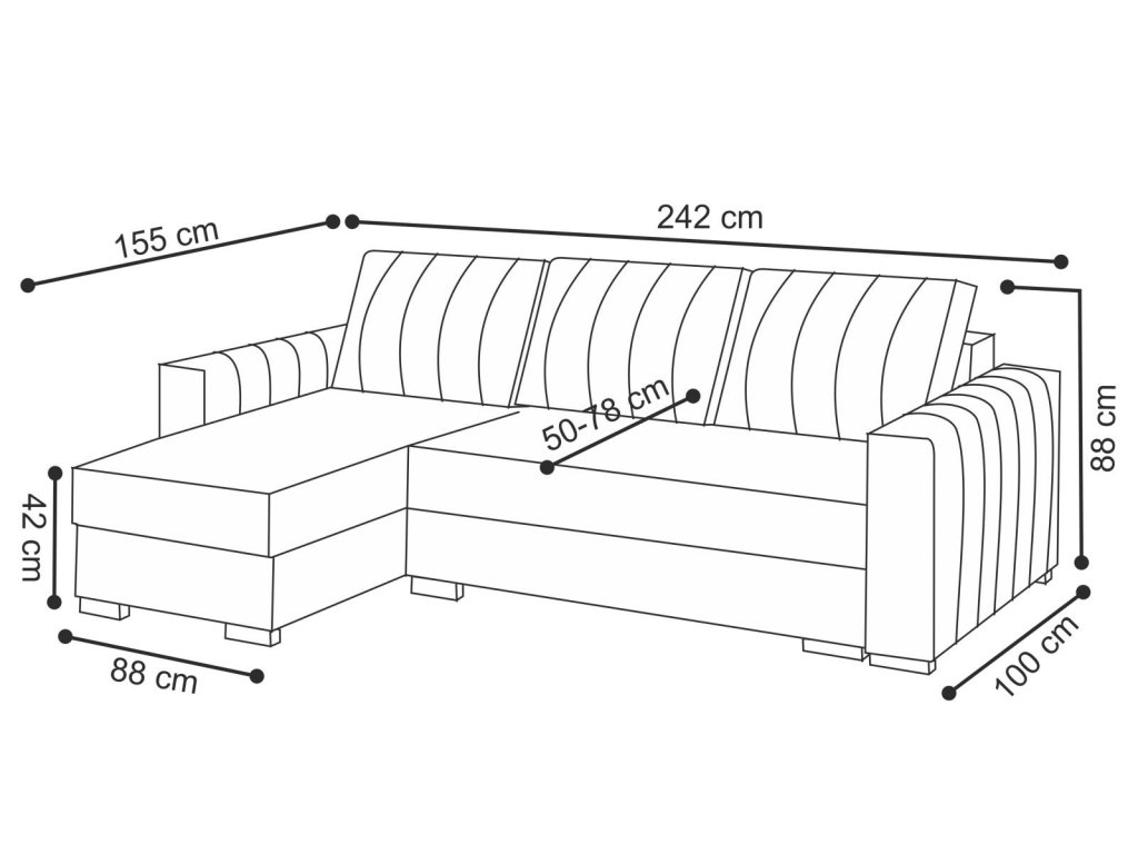 Verča je moderní rohová sedací souprava s nadčasovým designem. Její předností je pohodlí, praktičnost a univerzální použití. Můžete si ji podle potřeby sestavit jako levou nebo pravou, což je výhoda při zařizování obývacího pokoje. Nemusíte přemýšlet do jakého rohu postavíte sedací soupravu, jednoduše ji podle potřeby přizpůsobíte. Pohodlí při sezení zajišťuje kombinace pružin faliste s kvalitní PUR pěnou a velké opěrné polštáře, které jsou odnímatelné, takže si je můžete přizpůsobit svým potřebám. Praktickou stránkou sedací soupravy je úložný prostor a možnost rozložení k občasnému přespání Vaší návštěvy. V ceně sedací soupravy jsou 3 velké opěrné polštáře. Ostatní vyobrazené dekorace nejsou v ceně. Správná barva potahové látky je zobrazena na první fotografii. Fotografie sedací soupravy v rozkladu je pouze ilustrační.