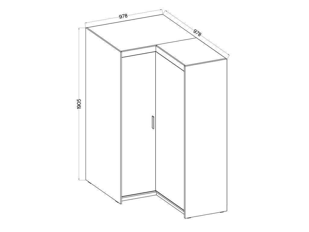 Rohové provedení se hodí hlavně do ložnice nebo dětského pokoje, kde oceníte lepší práci s dispozicí místnosti. Uvnitř najdete kombinaci polic a šatní tyče, takže snadno oddělíte zavěšené oblečení od složených věcí.