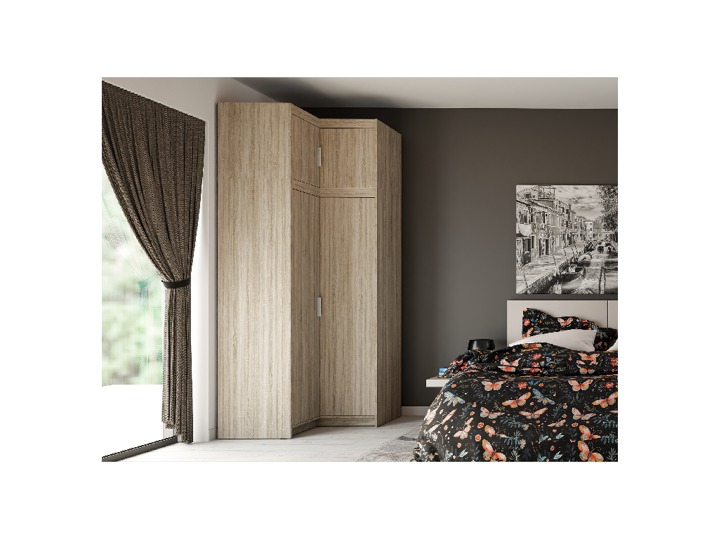 Rohová skříň Elena 2D dub sonoma je chytré řešení do místností, kde chcete využít i roh bez hluchého místa. Nabídne velkorysý úložný prostor a zároveň pomůže udržet interiér přehledný a funkční.