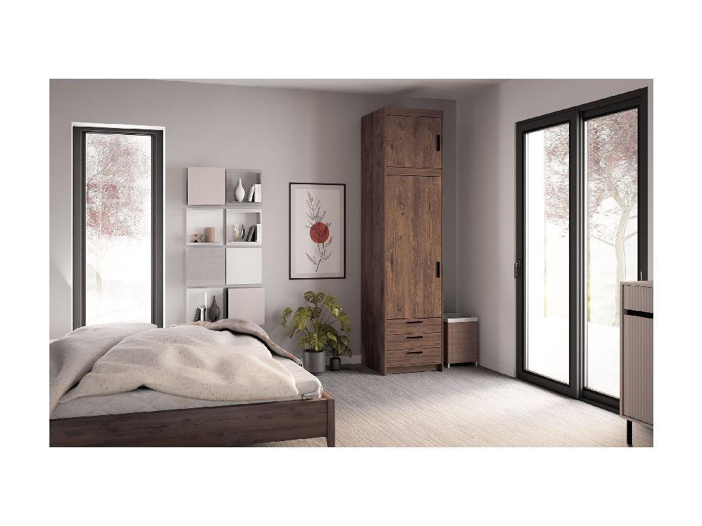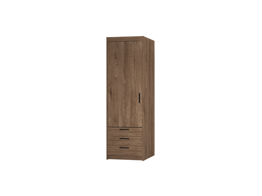 Šatní skříň Elena 1D 3S dub lefkas je praktická volba do menších místností, kde chcete vytěžit maximum z dostupného prostoru. Úzké provedení doplňuje prostor pro zavěšení oblečení i zásuvky pro drobnější věci, takže vše zůstane přehledně uspořádané.