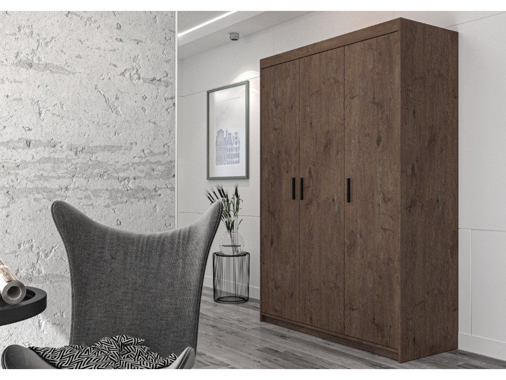 Šatní skříň Elena 3D dub lefkas je praktická šatní skříň pro zákazníky, kteří potřebují více úložného prostoru než u klasické dvoudveřové varianty. Díky větší šířce dobře poslouží v ložnici i dětském pokoji.