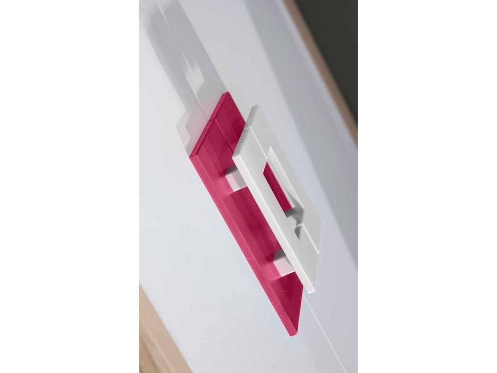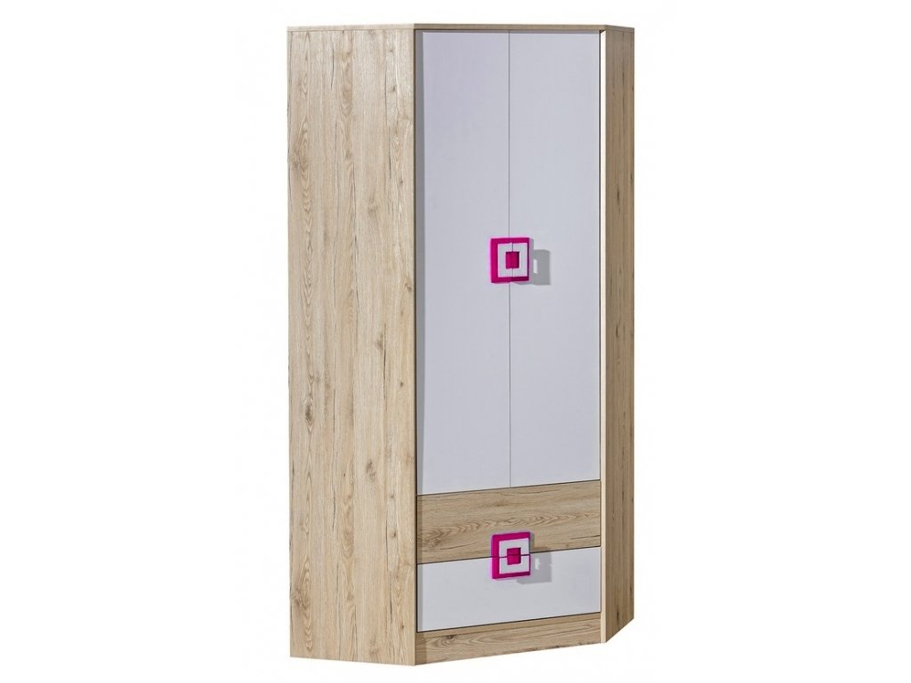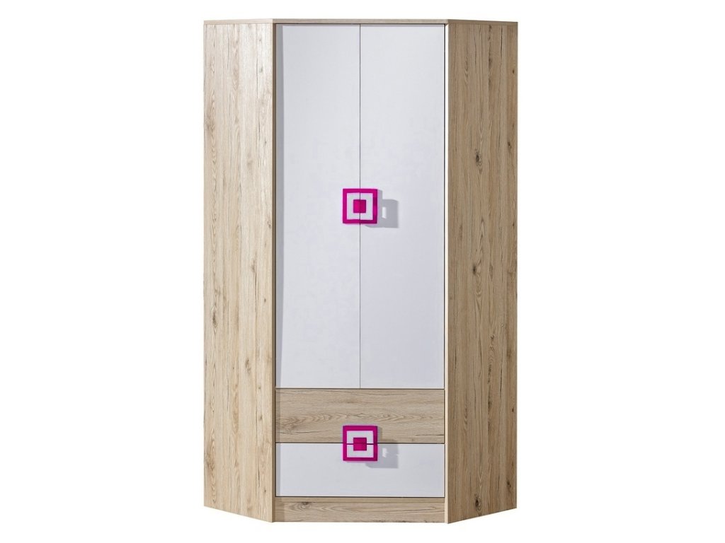 Rohová šatní skříň NIKO ze sektorové řady, která se vyznačuje netradičním zpracováním barev a originalitou úchytů. Tento styl nábytku zaujme každou mladší generaci. Skříň je vyrobena z kvalitní LTD desky hraněné ABS lištou. Korpus je v barvě dub jasný, dveře jsou v kombinaci barev bílá mat / dub jasný. Úchytky jsou v barevné kombinaci růžová / bílá. Uvnitř skříně je šatníková tyč, 3 police a v dolní části jsou 2 zásuvky. Sektorový nábytek NIKO má široký výběr prvků, který Vám zaručí sestavit si dětský nebo studentský pokoj, ložnici či kancelář podle svých potřeb, přání a představ. Dodáváme v demontovaném stavu.Doplňkové parametry