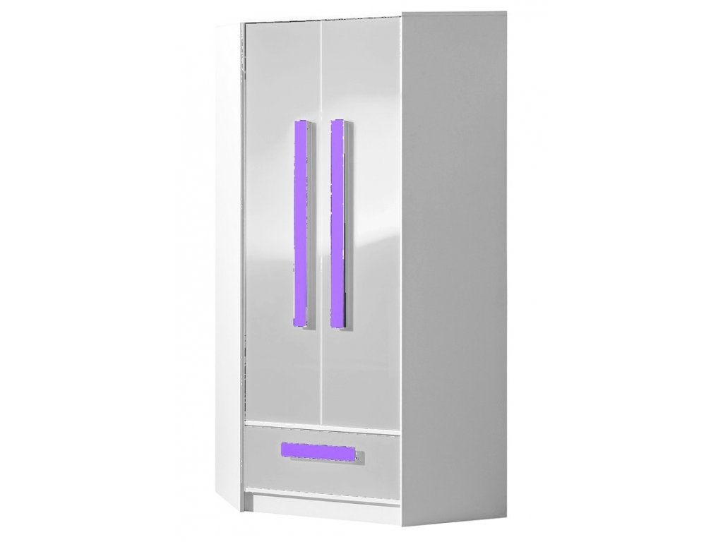 Šatní skříň rohová GULLIWER 2 bílá lesk/fialová