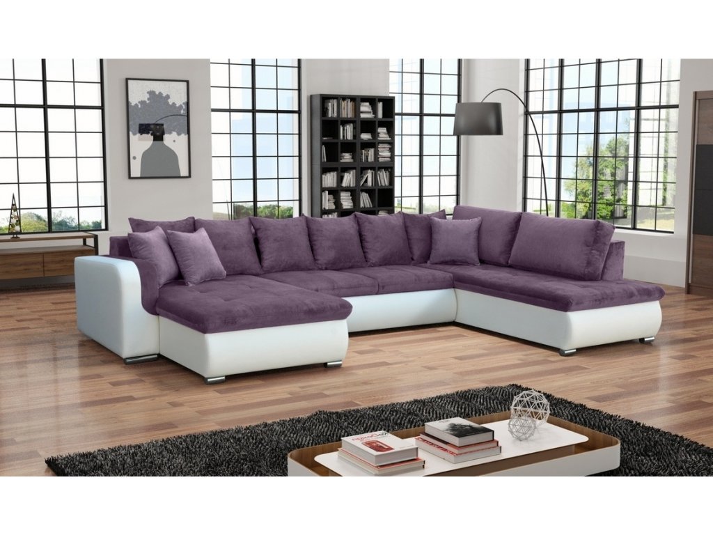 Praktická prostorná celočalouněná rohová sedačka do tvaru U. Netradiční a velmi moderní vzhled. Sedačka obsahuje prostor na příležitostní spaní. Po rozložení je spací plocha 285 x 135 cm. Rozklad je snadný, vysune se vozík s matrací do přední části. Pohodlné sezení zaručují vlnovcové pružiny spolu s PUR pěnou ( T30 ). Výška sedu je 41 cm, hloubka sedu 48 cm ( bez polštářů 63 cm ), výška sedačky bez polštářů 65 cm. Nožky jsou kovové pochromované. Barevné provedení - korpus ekokůže Madryt 120, sedací a opěrná část látka Orinoco 64 a dekorační polštářky Orinoco 64.Doplňkové parametry