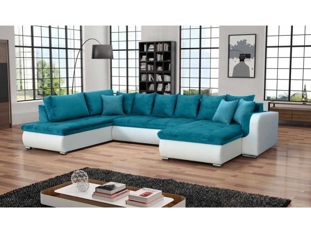 šířka: 344 cm | výška: 76 cm | hloubka: 205/162 cm Praktická prostorná celočalouněná rohová sedačka do tvaru U. Netradiční a velmi moderní vzhled. Sedačka obsahuje prostor na...