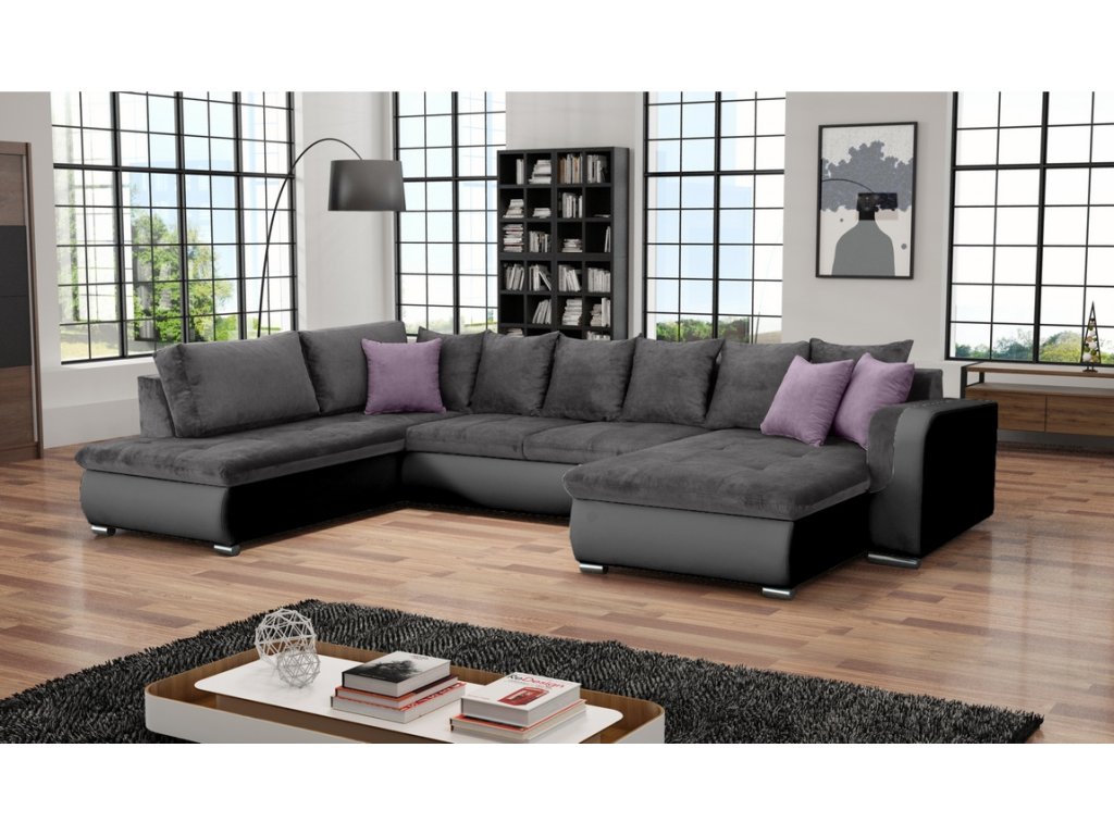 Praktická prostorná celočalouněná rohová sedačka do tvaru U. Netradiční a velmi moderní vzhled. Sedačka obsahuje prostor na příležitostní spaní. Po rozložení je spací plocha 285 x 135 cm. Rozklad je snadný, vysune se vozík s matrací do přední části. Pohodlné sezení zaručují vlnovcové pružiny spolu s PUR pěnou ( T30 ). Výška sedu je 41 cm, hloubka sedu 48 cm ( bez polštářů 63 cm ), výška sedačky bez polštářů 65 cm. Nožky jsou kovové pochromované. Barevné provedení - korpus ekokůže Madryt 1100, sedací a opěrná část látka Orinoco 96 a dekorační polštářky Orinoko 64.Doplňkové parametry
