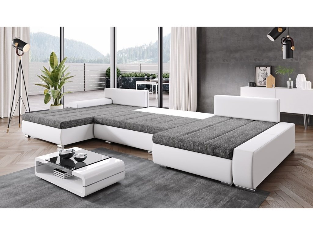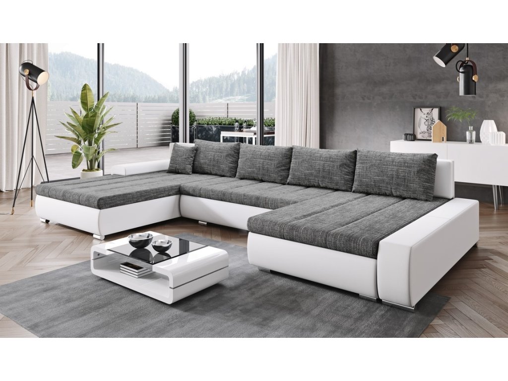 šířka: 344 cm | výška: 76 cm | hloubka: 205/162 cm Praktická prostorná celočalouněná rohová sedačka do tvaru U. Netradiční a velmi moderní vzhled. Sedačka obsahuje prostor na...