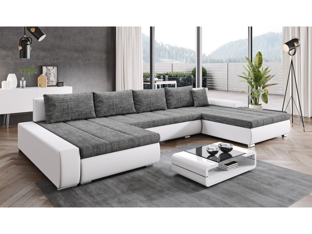 šířka: 344 cm | výška: 76 cm | hloubka: 205/162 cm Praktická prostorná celočalouněná rohová sedačka do tvaru U. Netradiční a velmi moderní vzhled. Sedačka obsahuje prostor na...