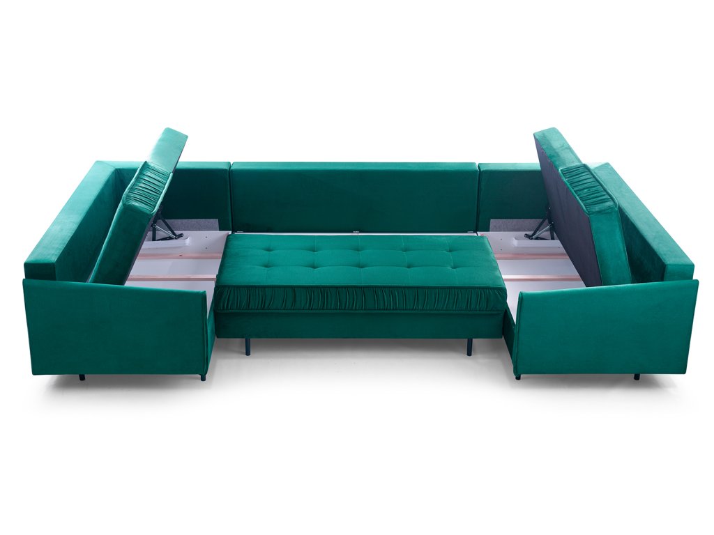Sedací souprava Amalia je vyrobena v jednoduchém elegantním designu, který se hodí do všech interiérů. Sedací souprava je rozkládací. Jednoduchým rozložením vytvoříte dostatečně velké lůžko k příležitostnému přespání Vaší návštěvy. Samozřejmostí je i praktický úložný prostor po obou stranách, který můžete využít např. na lůžkoviny. Sedací souprava je potažena velmi kvalitní a pevnou látkou, která je vhodná pro náročné použití v domácnostech. Je celočalouněná, takže je vhodná i k umístění do prostoru. Fotografie sedací soupravy v rozkladu jsou pouze ilustrační.