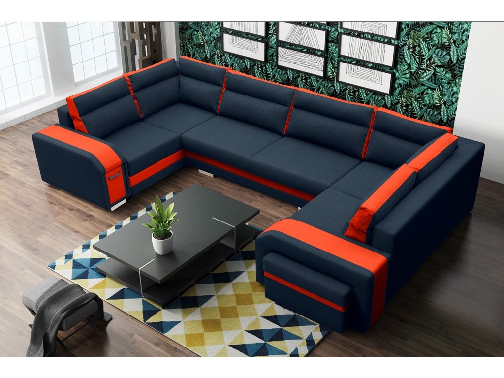 Sedací souprava Association ve tvaru U, osloví každého, kdo preferuje moderní vzhled a zároveň pohodlí a praktičnost. Sedací souprava je velmi pohodlná a dostatečně velká na posezení s přáteli, nebo rodinou. Pro případ, že se návštěva zdrží přes noc, je sedací souprava vybavena rozkladem. Pomocí automatu jednoduše sedací sopuravu přeměníte v prostorné lůžko. Sedací souprava má 3 praktické úložné prostory a další úložný prostor najdete v područi, kde je důmyslně ukrytý bar a také v taburetu. Výplň sedáků tvoří kombinace pružin faliste s kvalitní PUR pěnou. Návod na rozložení můžete shlédnout v krátkém gifu, který najdete v doplňkových fotografiích, kde také najdete fotografii s detailními rozměry. Sedací soupravu nabízíme v kvalitní potahové látce se zajímavým lemováním, a to v několika barevných provedeních. Sedací soupravu nabízíme v levém i pravém provedení, nebo také v prodedení do L. Sedací souprava bude dodána v kombinaci potahových látek, která je vyobrazena na úvodní fotografii. Vyobrazené dekorace nejsou v ceně.