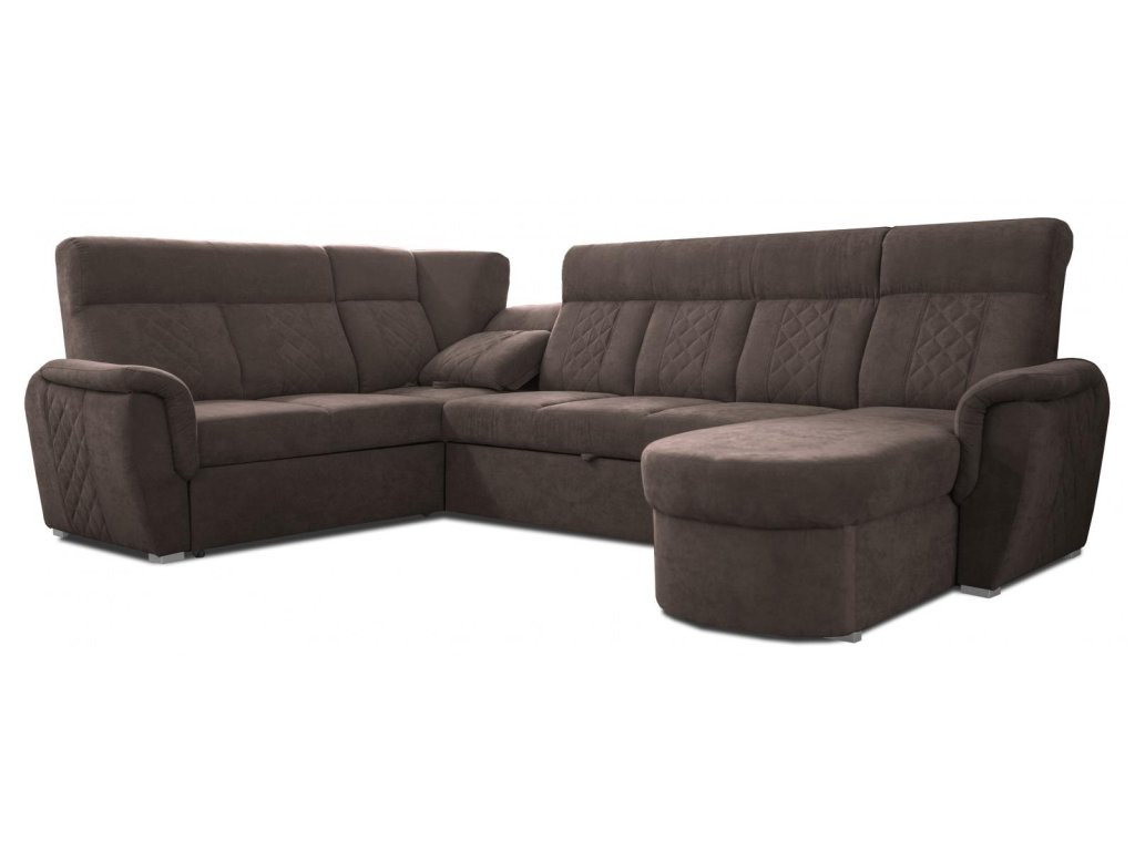 šířka: 344 cm | výška: 76 cm | hloubka: 205/162 cm Praktická prostorná celočalouněná rohová sedačka do tvaru U. Netradiční a velmi moderní vzhled. Sedačka obsahuje prostor na...