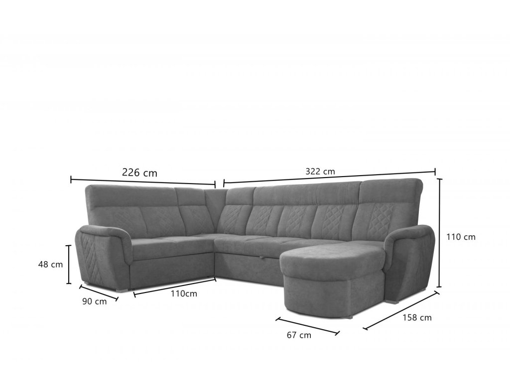šířka: 398 cm | výška: 85 cm | hloubka: 210 cm Praktická prostorná celočalouněná rohová sedačka do tvaru U v moderním provedení. Sedačka obsahuje úložný prostor a prostor na...