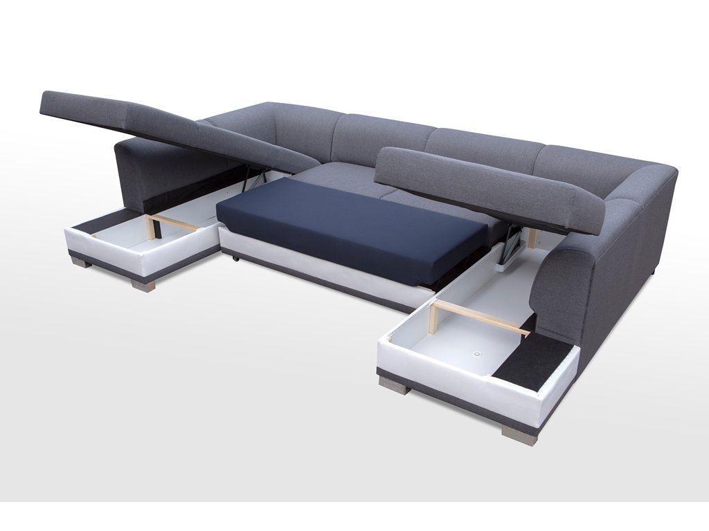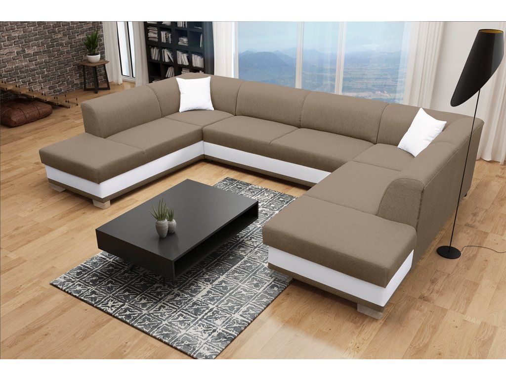 šířka: 344 cm | výška: 76 cm | hloubka: 205/162 cm Praktická prostorná celočalouněná rohová sedačka do tvaru U. Netradiční a velmi moderní vzhled. Sedačka obsahuje prostor na...