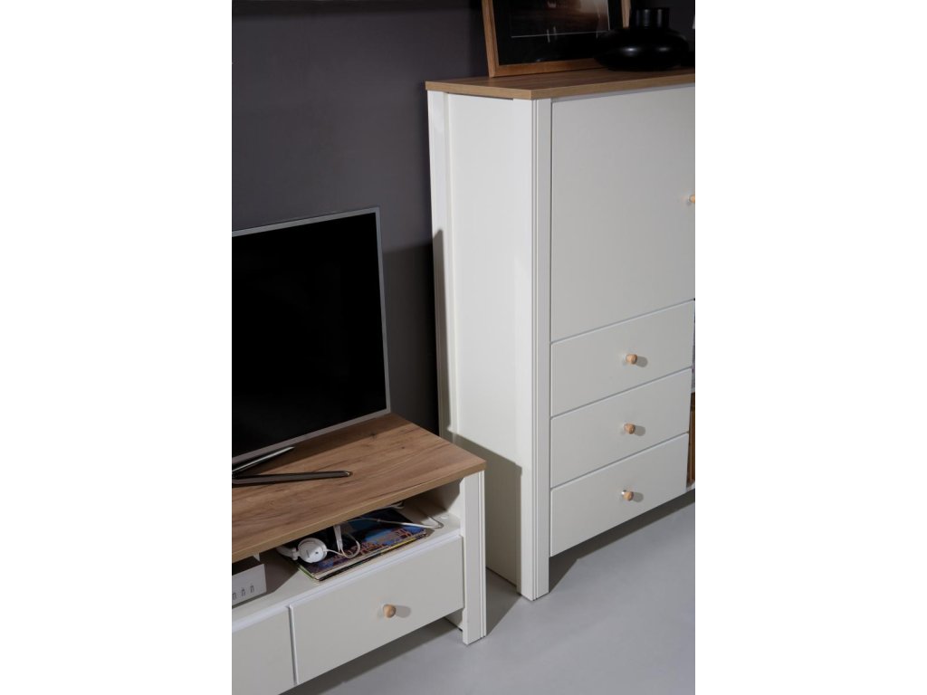 TV stolek Bacardi díky svému provedení poskytuje dostatek prostoru nejen televizi, ale i pro ostatní elektroniku, jako je např.domácí kino, herní konzole, audio technika atd...Stolek je vyrobený z lamina v krásné kombinaci dekorů zlatý dub/cream. Lamino je odolné a jistě oceníte i velmi snadnou údržbu. Stolek je dodávaný v demontu a součástí balení je montážní návod včetně všech spojovacích prvků.