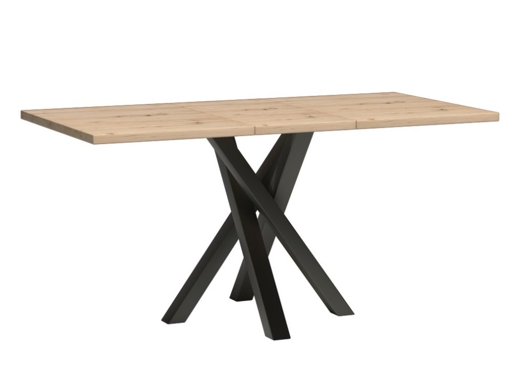 Jídelní rozkládací stůl je vyroben z kvalitního lamina ohraničeného ABS páskou v barvě dub artisan. Šířka stolu po rozložení je 260 cm (dvě vkládací desky o délce 50 cm), tloušťka desky je 3,2 cm. Nohy stolu jsou kovové v černé barvě. Kolekce se skládá z mnoha prvků a tento široký výběr Vám zaručí sestavit si nábytek podle svých vlastních představ a přání. Dodáváme v demontovaném stavu.Doplňkové parametry