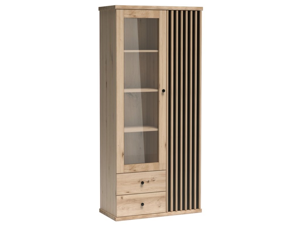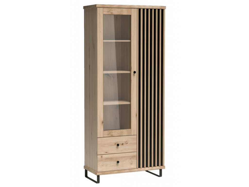 Vitrína na nohách 2D2S BARBUS dub artisan/černá