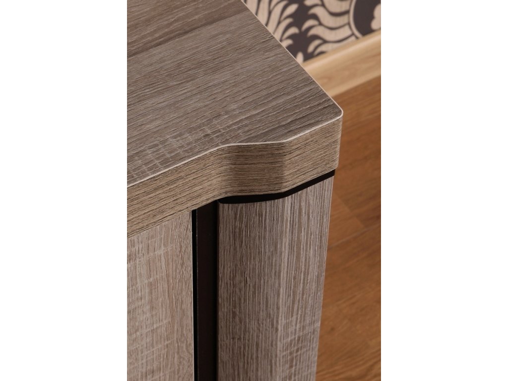 Kombinovaný regál ze sektorové řady, který má dvě zásuvky, dvoje dvířka a poličky. Má zajímavé provedení v podobě netradičně vyřezávaných vrchních a spodních desek. Systém je exkluzivní kolekce navržena v moderním duchu. Celá řada se vyznačuje masivním vzhledem a jednoduchými tvary. Nábytek je vyroben z kvalitního LTD s lištami z MDF, součástí nábytku jsou desky 48 mm, vše opatřeno ABS páskou. Barevné provedení - dub lanýž. Má široký výběr komponentů, díky kterým lze vybavit nejen obývací pokoj, ale i jídelnu nebo kancelář. Možnost dokoupeni 3 polic. Dodáváme v demontovaném stavu.Doplňkové parametry