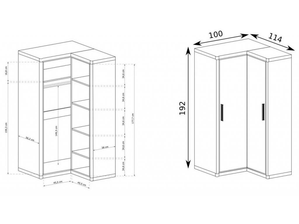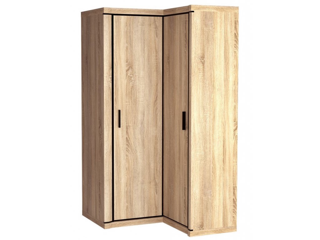 Rohová skříň 2-dveřová tvar do L ze sektorové řady, která má šatní tyč vlevo a police. Má zajímavé provedení v podobě netradičně vyřezávaných vrchních a spodních desek. Systém je exkluzivní kolekce navržena v moderním duchu. Celá řada se vyznačuje masivním vzhledem a jednoduchými tvary. Nábytek je vyroben z kvalitního LTD s lištami z MDF, součástí nábytku jsou desky 48 mm, vše opatřeno ABS páskou. Barevné provedení - dub sonoma. Má široký výběr komponentů, díky kterým lze vybavit nejen obývací pokoj, ale i ložnici nebo kancelář. Skříň má univerzální otvírání dvířek. Dodáváme v demontovaném stavuDoplňkové parametry