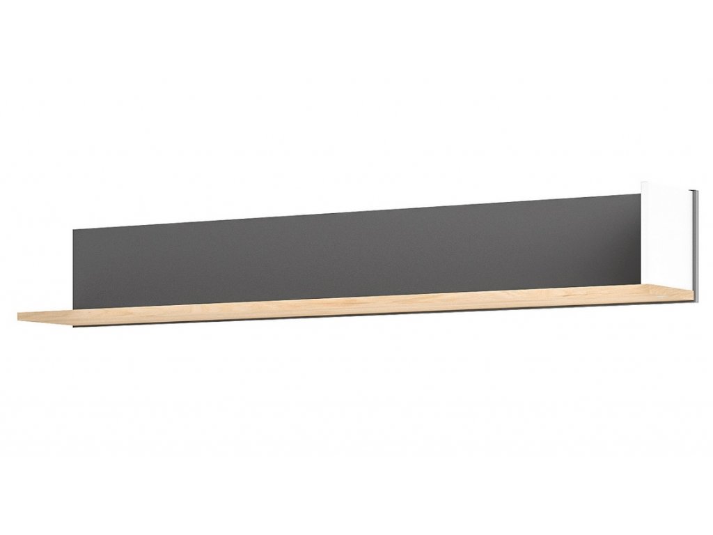 Závěsná police v moderním provedení je vyrobena z kvalitní desky LTD v kombinaci barev ořech americký jackson/bílá mat/grafit mat. Dodáváme v demontovaném stavu.Doplňkové parametry