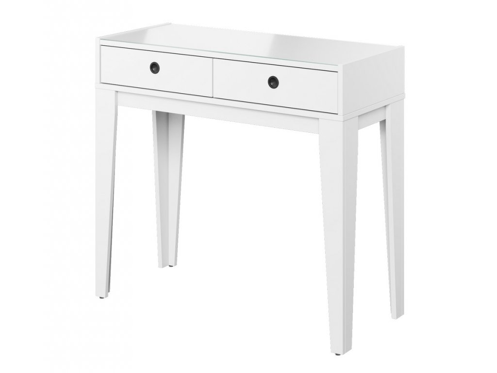 Toaletní stolek se dvěma zásuvkami v moderním provedení. Nábytek je vyroben z desky LTD hraněné páskou ABS v barvě bílá mat. Dodáváme v demontovaném stavu.Doplňkové parametry