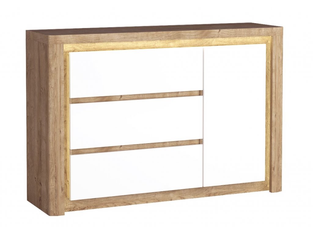 Komoda 1D3S LABRO dub ribbeck/bílá lesk
