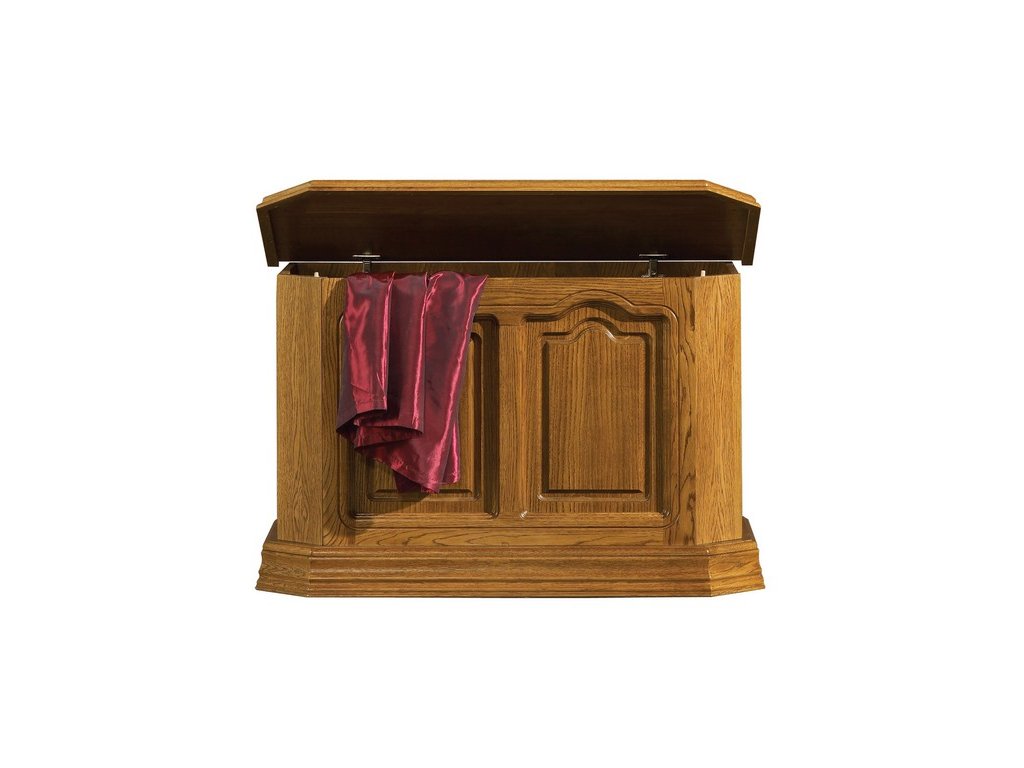 Skříňka - kufr s úložným prostorem značkového výrobce, který si potrpí na kvalitě a detailech. Nábytek je vyráběn v rustikálním duchu, který je dnes velmi populární. Čela jsou vyrobena z masívního dubového dřeva, korpusy z přírodní dubové dýhy. Máte možnost výběru moření. Dřevo je třeba čistit suchým měkkým hadříkem, je možné též používat prostředky na konzervaci a ochranu dřeva neobsahující silikon. Otvírání pomocí víka.Doplňkové parametry