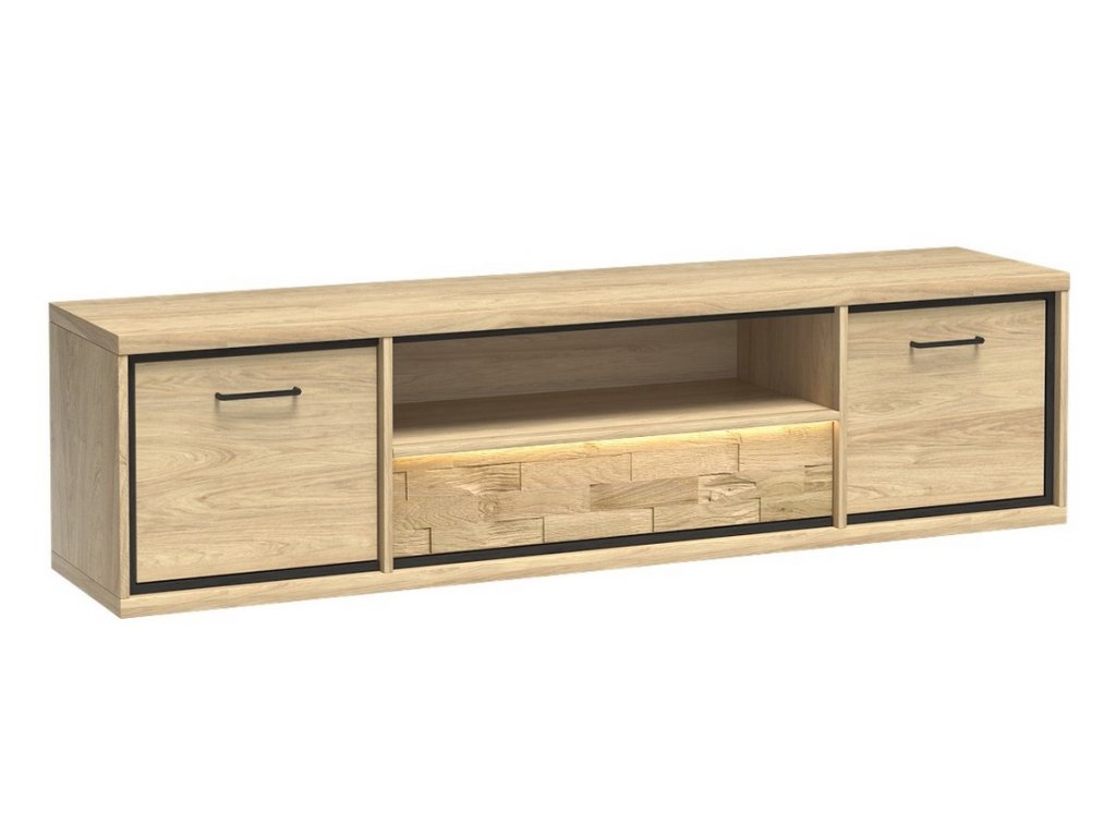 Obývací sestava v industriálním stylu v barevném provedení dub hickory, doplněno prvky v černé barvě. Nábytek je vyroben z kvalitního lamina ohraničeného ABS páskou a také je vybaven systémem tichého dovírání. Sestava se skládá z těchto prvků (Š x V x H cm) - vitrína (92,2 x 197 x 41 cm), závěsná police (120 x 32 x 18 cm) a televizní stolek (181 x 47,5 x 41 cm). Zásuvka je doplněna dekorační dubovou deskou a systémem push to open - otvírání zmáčknutím zásuvky. Úchyty jsou černé kovové. Dále je možné dokoupit LED osvětlení vitríny a také LED dekorační pásek. Kolekce se skládá z mnoha prvků a tento široký výběr Vám zaručí sestavit si nábytek podle svých vlastních představ a přání. Dodáváme v demontovaném stavu.Doplňkové parametry