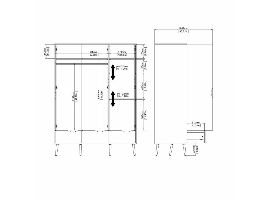 | Vnitřní uspořádání: | police + šatní tyč |