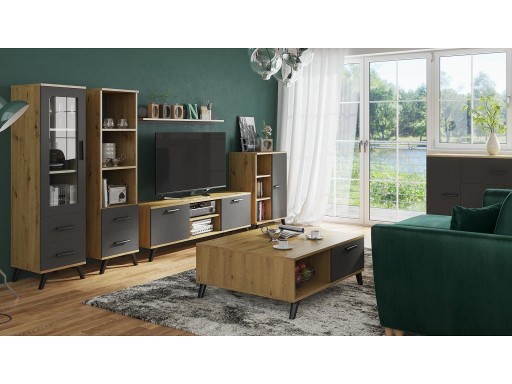 Roky Grafit je moderní bytová sestava v kombinaci 2 módních barev, grafit a dub artisan. Je vyrobena z vysoce kvalitní laminované dřevotřísky tloušťky 18 mm, odolné vůči poškrábání, vlhkosti a vysokým teplotám. Všechny hrany jsou opatřeny ABS lištou, která zajistí trvanlivost a odolnost proti nárazu. Díky této bytové stěně budete mít pohodlný i praktický interiér a také útulné a bezpečné prostředí, ve kterém se každý bude cítit dobře. Veškeré díly, které tato sestava obsahuje, si můžete objednat samostatně. Všechny prvky této sestavy jsou dodávány v demontu. Součástí je montážní plánek včetně všech potřebných spojovacích materiálů. Vyobrazené dekorace nejsou v ceně.