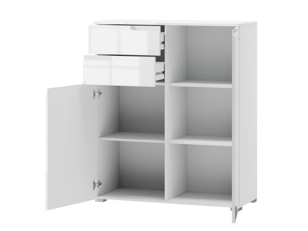 Komoda dvoudveřová se dvěma zásuvkami ze sektorové řady. Jednoduchost a elegance bílé barvy této řady umožňuje kombinaci s dalšími barvami vašeho interiéru. Korpus je vyroben z kvalitní LTD desky v barvě bílá mat. Dvířka jsou vyrobeny z MDF desky v barvě bílá lesk. Úchyty jsou vyfrézovány do čelní desky. Široká nabídka komponentů této sektorové řady umožňuje sestavit si nábytek nejen do jídelny či předsíně, ale také do ložnice, obývacího nebo studentského pokoje dle vlastních představ. Dodáváme v demontovaném stavu.Doplňkové parametry