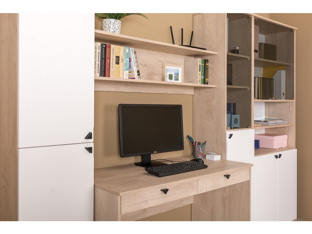 Pracovní sestava v praktickém provedení - sestava se skládá (Š x V x H) - regál ( 72,3 x 114,8 x 33,5 cm ), psací stůl (120 x 75 x 50 cm ) a regál s dvířky ( 90 x 200 x 45 cm )....