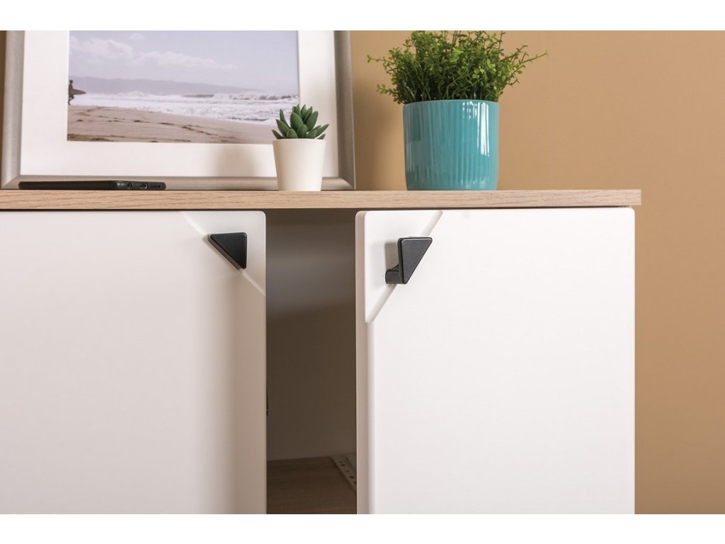 šířka: 77 cm | výška: 76 cm | hloubka: 35 cm Komoda dvoudveřová, korpus je v barvě dub endgrain elegance, dvířka z MDF jsou v barvě milk rikamo soft. Úchyty jsou kovové....