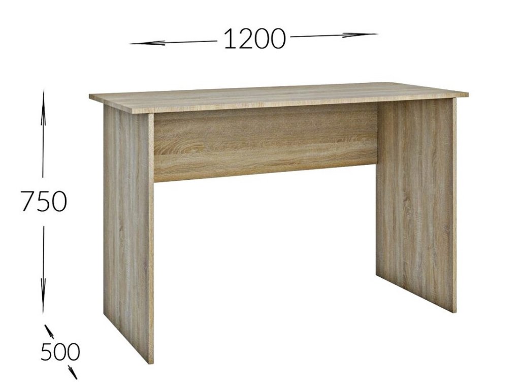 šířka: 120 cm | výška: 75 cm | hloubka: 50 cm Jednoduchý pracovní stůl, vyrobený z kvalitní LTD v barvě dub sonoma, se hodí do každé kanceláře, pracovny či dětského pokoje. Stůl...