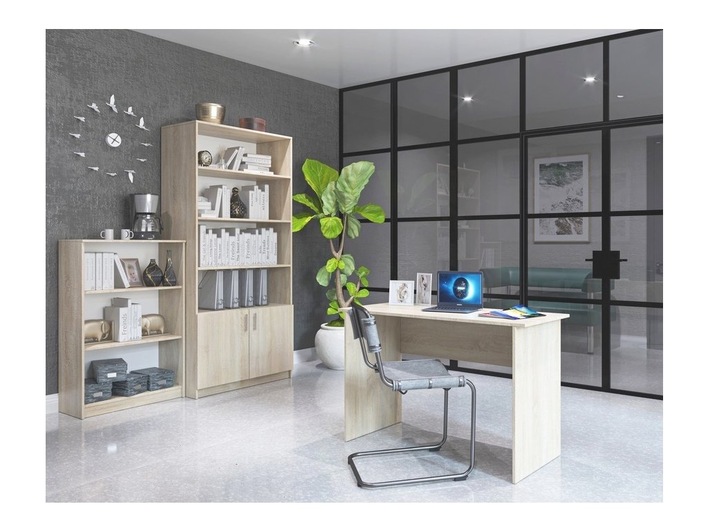 Pracovní sestava v praktickém provedení - sestava se skládá (Š x V x H) - regál ( 72,3 x 114,8 x 33,5 cm ), psací stůl (120 x 75 x 50 cm ) a regál s dvířky ( 90 x 200 x 45 cm ). Korpus i dvířka jsou z kvalitní LTD v barvě dub sonoma. Možnost koupení dalších komponentů této řady. Dodáváme v demontovaném stavu.Doplňkové parametry